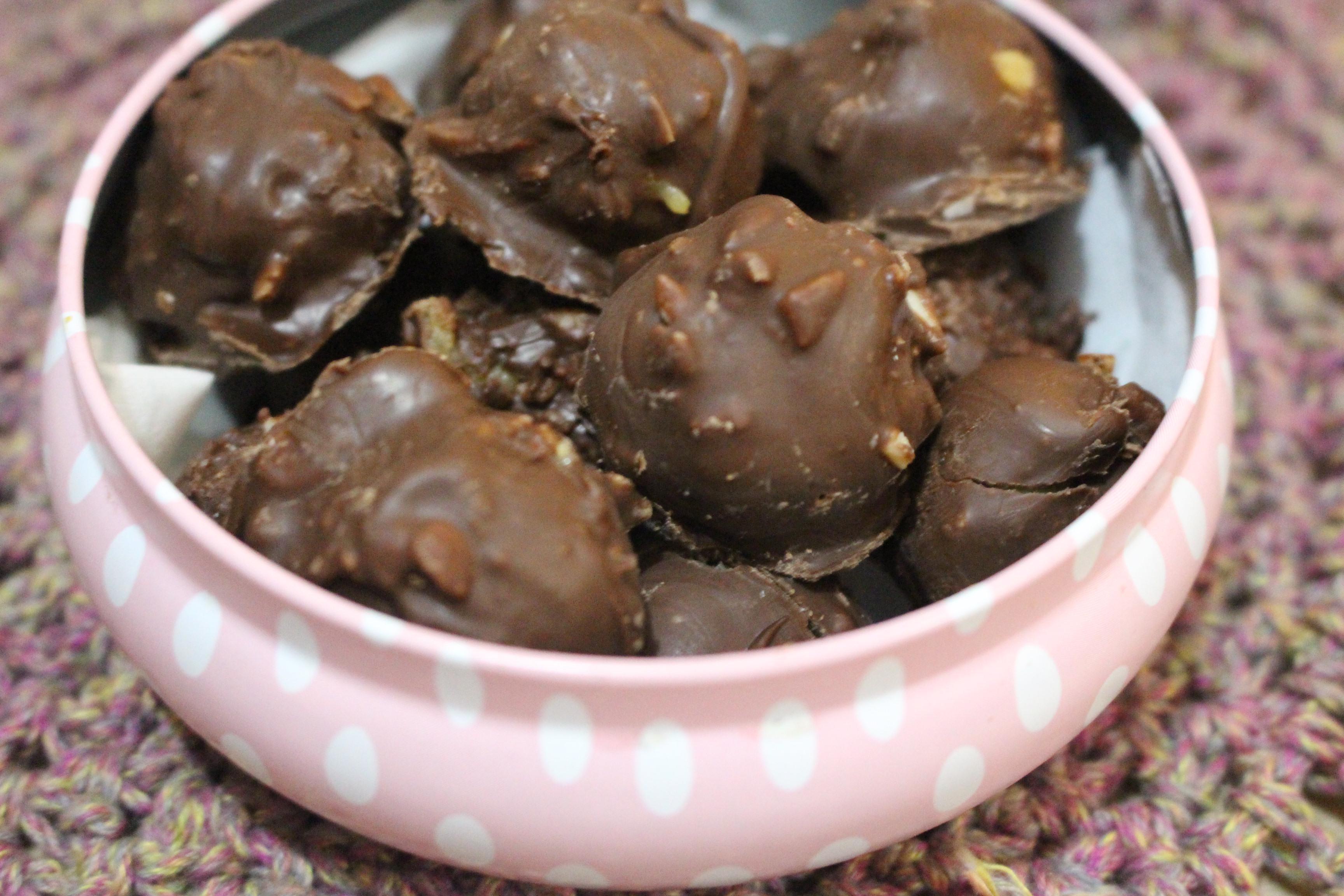 يسخن قدر صغير على النار ثم نرفعه عن النار ونضع قطع الشوكولاته حتى يصبح سائلا ثم نضيف اللوز ثم نبدأ بغمس كرات المشمش بالشوكولاته وتوضع بورق مشمع ثم تبرد .... وبالعافيه .