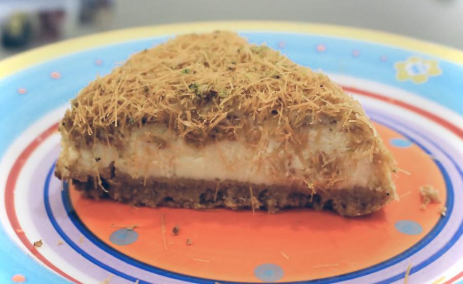 Pour the toffee over up the cheesecake and decorate by Pakistani vermicelli and pistachio.